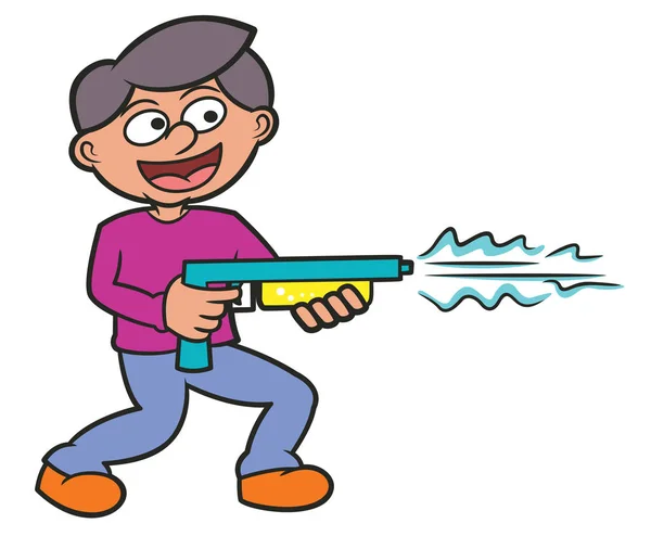 Boy Playing Water Gun Toy Cartoon Illustration — Stock ...